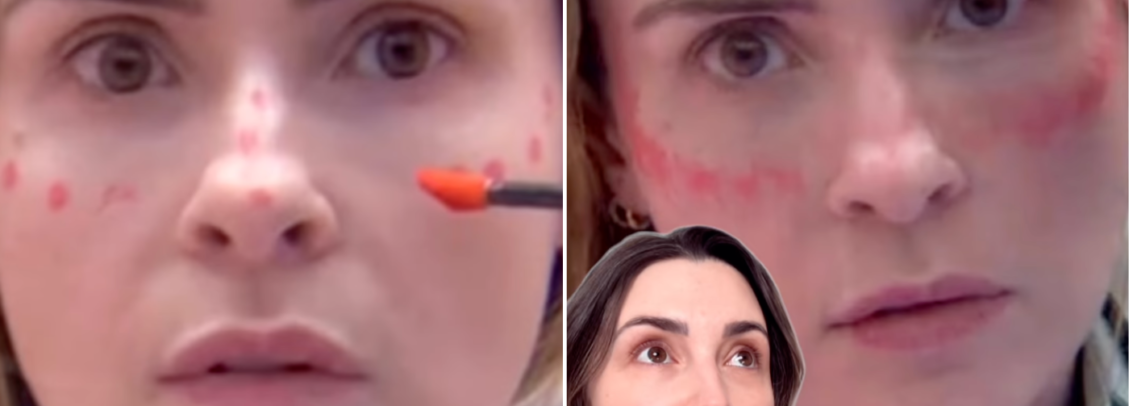 O preço do blush, contudo, não é um motivo para Ana Paula segurar a mão na hora de aplicá-lo. Isso porque ela gosta de fazer pequenas fazendo um meio círculo da bochecha até as têmporas. Além disso, ela aplica três gotinhas sobre o ossinho do nariz.
