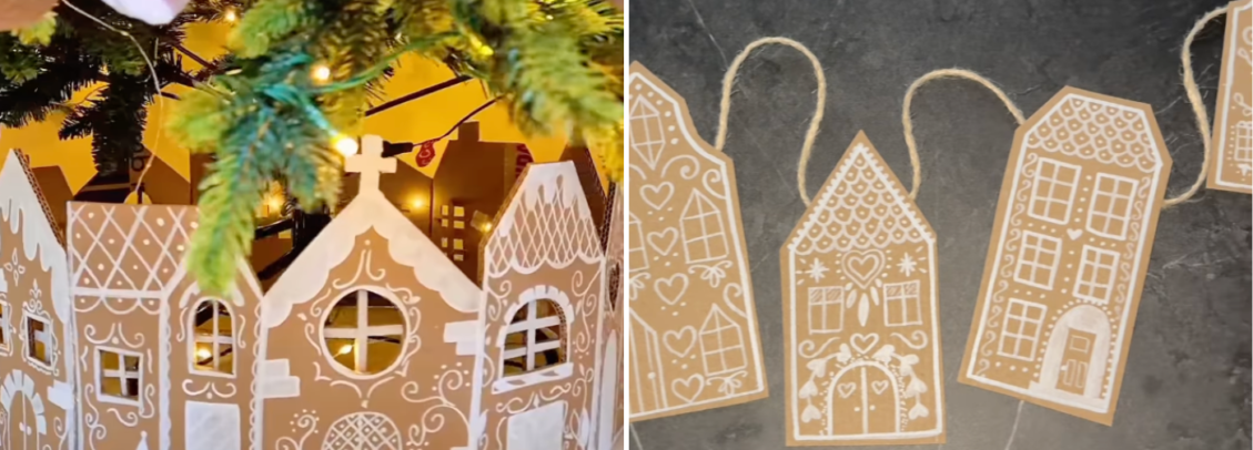 Esse truque cria um efeito de casinhas de gingerbread e serve para criar uma vila natalina em diversos pontos da sua casa. Veja como.